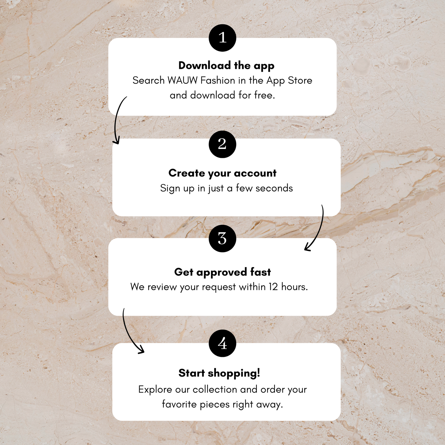 Whether you own a boutique, concept store, or online shop, shopping at WAUW is simple, fast, and affordable.